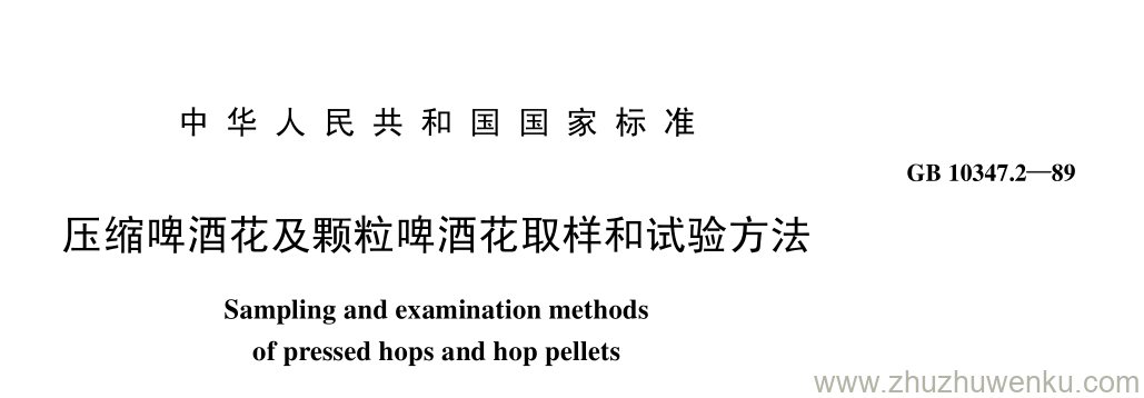 GB/T 10347.2-1989 pdf下载 压缩啤酒花及颗粒啤酒花取样和试验方法