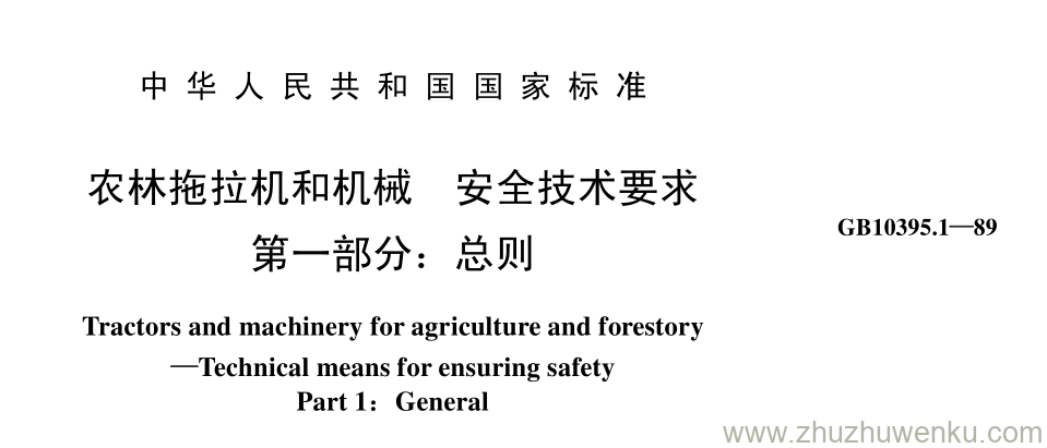 GB/T 10395.1-1989 pdf下载 农林拖拉机和机械 安全技术要求 第一部分: 总则