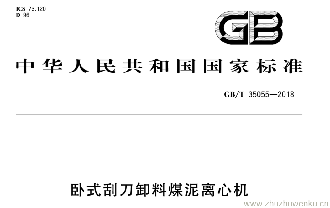 GB/T 35055-2018 pdf下载 卧式刮刀卸料煤泥离心机