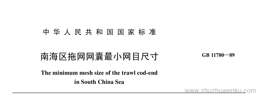 GB/T 11780-1989 pdf下载 南海区拖网网囊最小网目尺寸