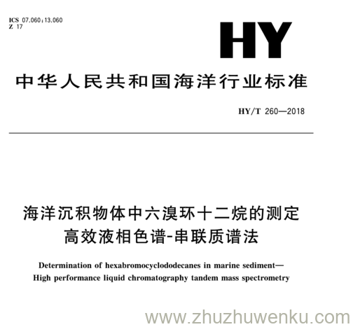 HY/T 260-2018 pdf下载 海洋沉积物体中六溴环十二烷的测定 高效液相色谱-串联质谱法