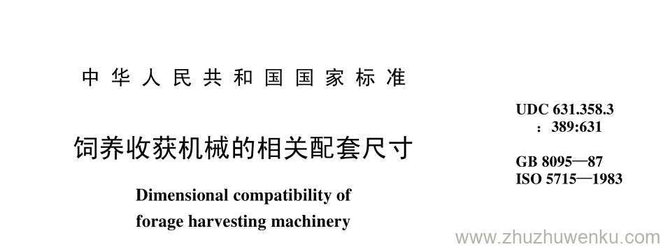 GB/T 8095-1987 pdf下载 饲养收获机械的相关配套尺寸