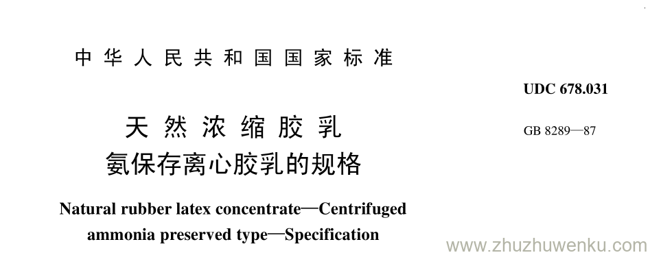 GB/T 8289-1987 pdf下载 天 然 浓 缩 胶 乳 氨保存离心胶乳的规格