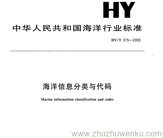 HY/T 075-2005 pdf下载 海洋信息分类与代码 。Marine information classification and codes .