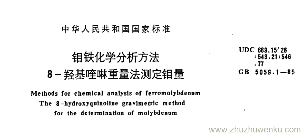 GB/T 5059.1-1985 pdf下载 钼铁化学分析方法 8-羟基喹啉重量法测定钼量
