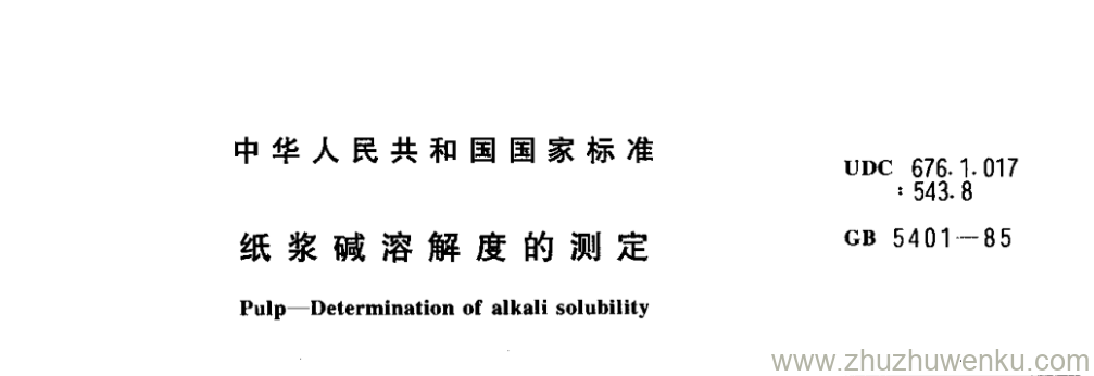 GB/T 5401-1985 pdf下载 纸浆碱溶解度的测定