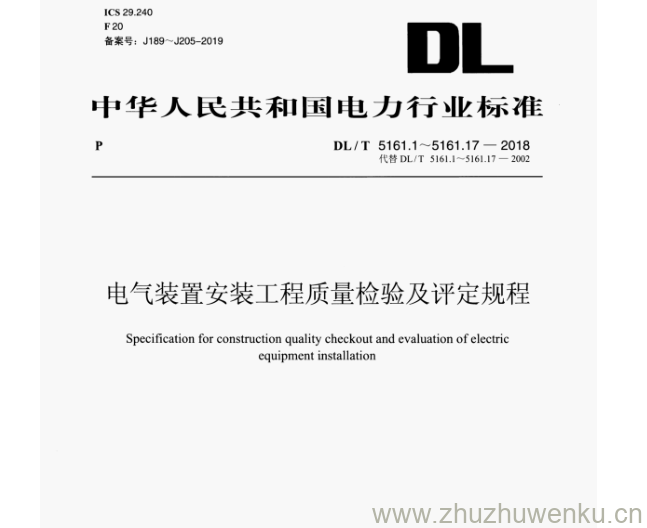 DL/T 5161.3-2018 pdf下载 电气装置安装工程质量检验及评定规程。Specification for construction quality checkout and evaluation of electric equpment installation.