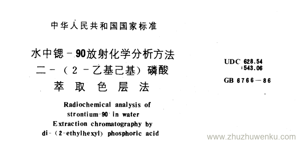GB/T 6766-1986 pdf下载 水中锶- 90放射化学分析方法 (2 -乙基己基)磷酸 萃 取 色 层 法