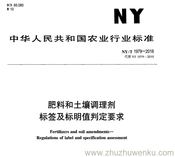 NY/T 1979-2018 pdf下载 肥料和土壤调理剂 标签及标明值判定要求
