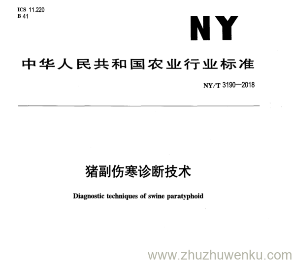 NY/T 3190-2018 pdf下载 猪副伤寒诊断技术。 Diagnostic techniques of swine paratyphoid.