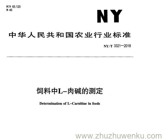 NY/T 3321-2018 pdf下载 词料中 L – 肉碱的测定。 Determination of L-Carnitine in feeds.