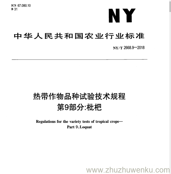 NY/T 2668.9-2018 pdf下载 热带作物品种试验技术规程 第9部分:枇杷。 Regulations for the variety tests of tropical crops— Part 9 : Loquat.