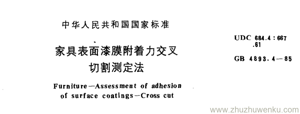 GB/T 4893.4-1984 pdf下载 家具表面漆膜附着力交叉 切割测定法