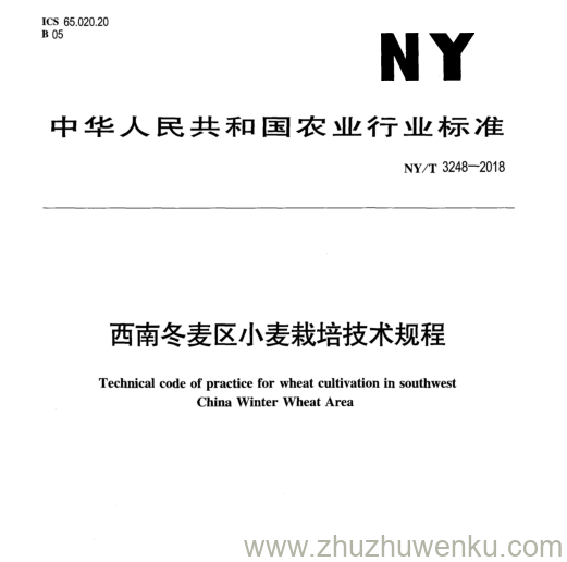 NY/T 3248-2018 pdf下载 西南冬麦区小麦栽培技术规程。 Technical code of practice for wheat cultivation in southwest China Winter Wheat Area.