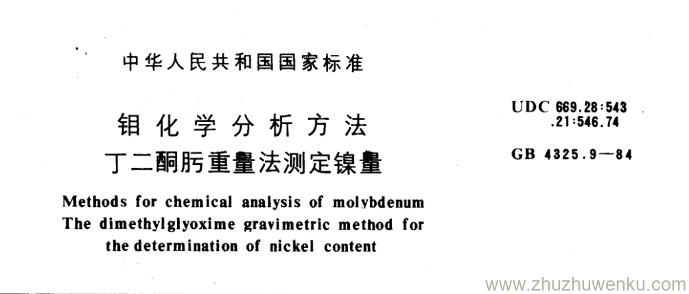 GB/T 4325.9-1984 pdf下载 钼化学分析方法 丁二酮肟重量法测定镍量