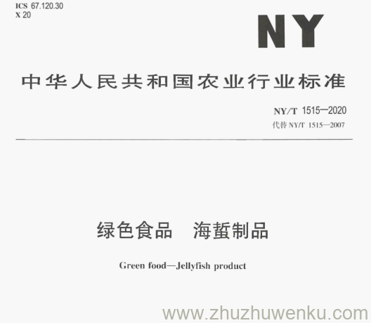 NY/T 1515-2020 pdf下载 绿色食品 海蜇制品