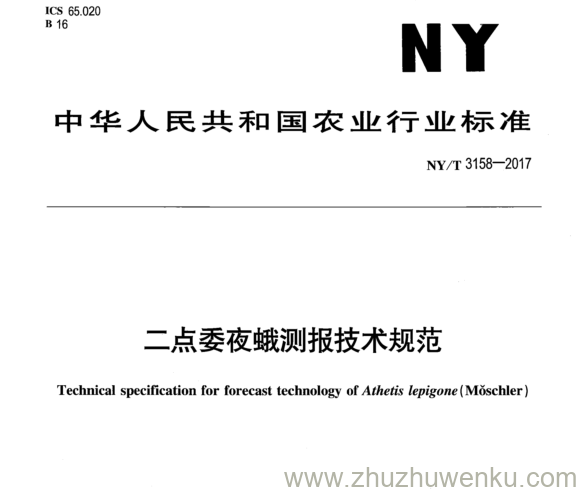 NY/T 3158-2017 pdf下载 二点委夜蛾测报技术规范 。Technical specification for forecast technology of Athetis lepigone(Moschler).