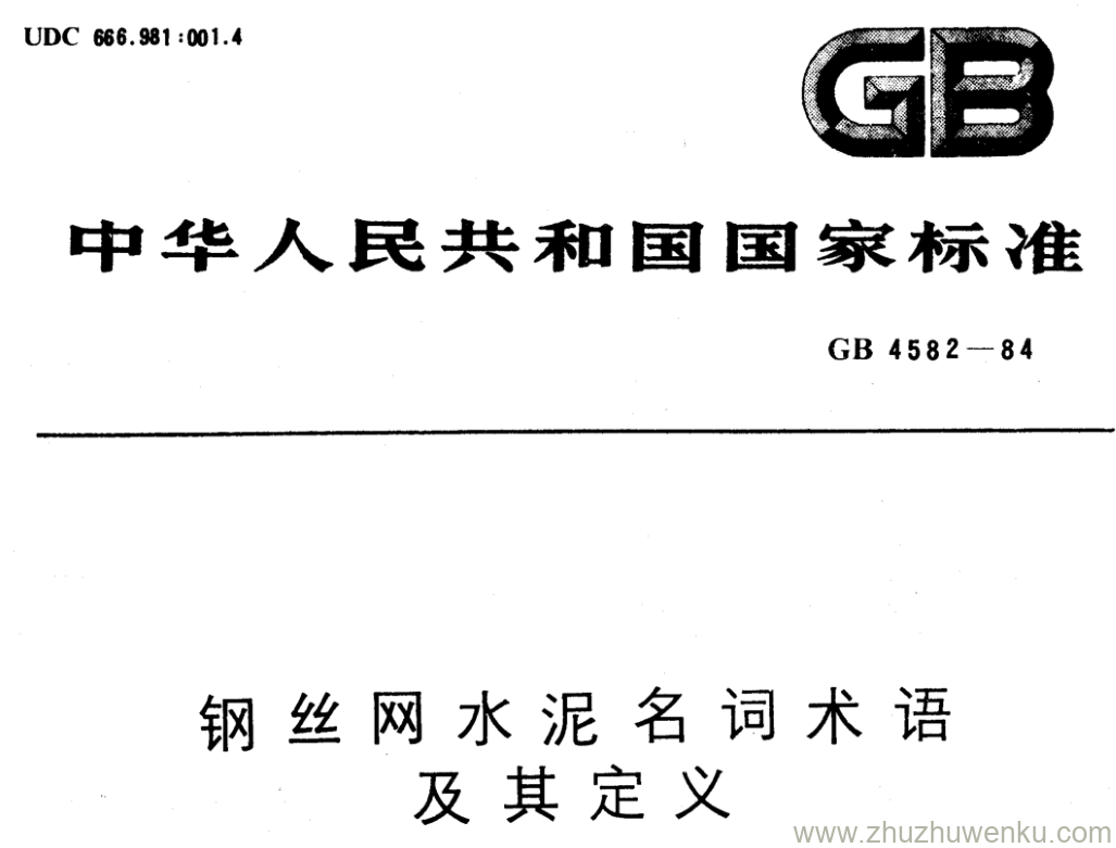 GB/T 4582-1984 pdf下载 钢丝网水泥名词术语 及其定义