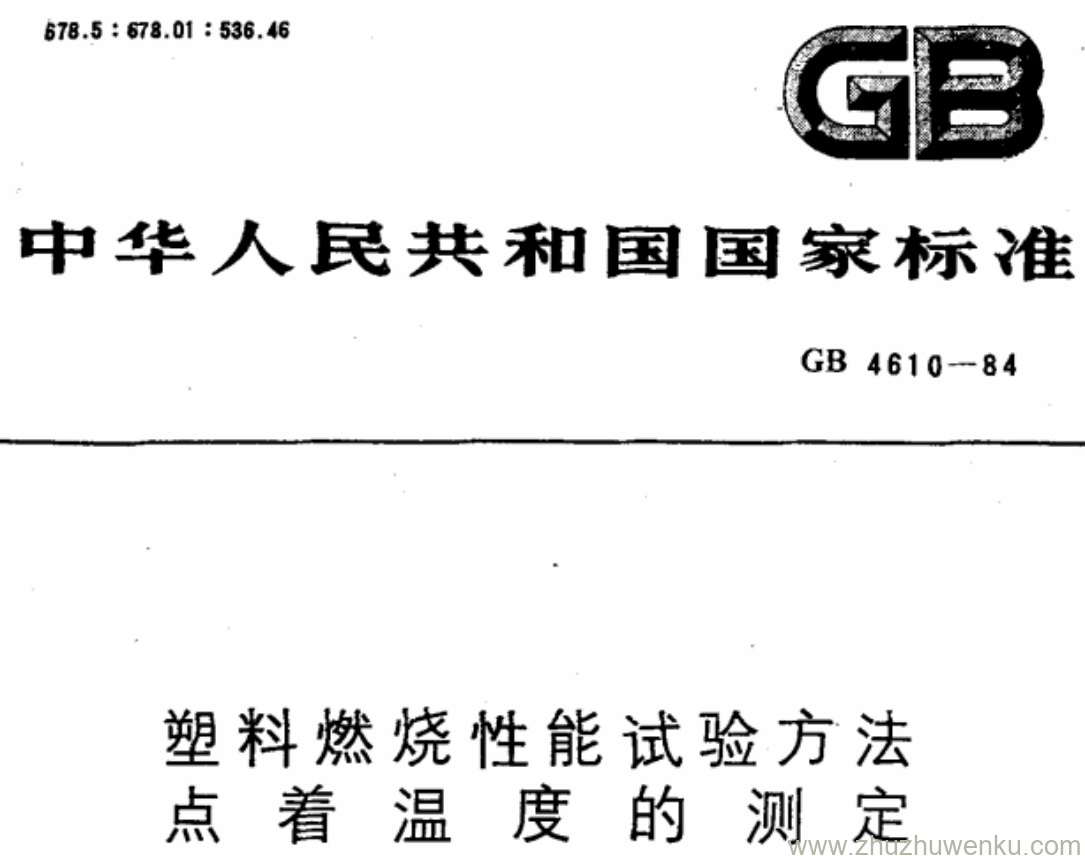 GB/T 4610-1984 pdf下载 塑料燃烧性能试验方法 点 着 温 度 的 测 定