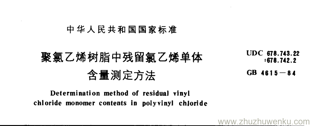 GB/T 4615-1984 pdf下载 聚氯乙烯树脂中残留氯乙烯单体 含量测定方法