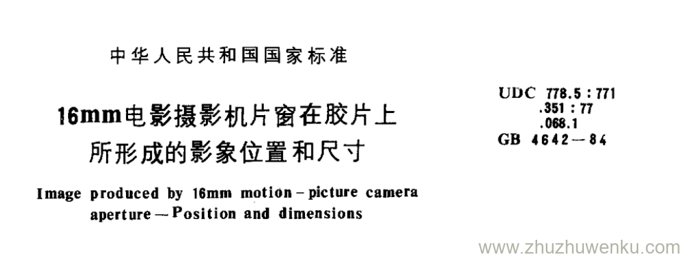 GB/T 4642-1984 pdf下载 16mm电影摄影机片窗在胶片上 所形成的影象位置和尺寸