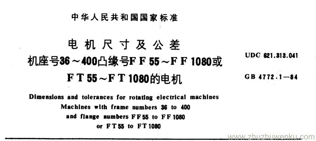 GB/T 4772.1-1984 pdf下载 电机尺寸及公差 机座号36 ~ 400凸缘号F F 55~F F 1080或 F T 55~FT 1080的电机