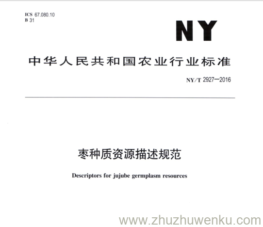 NY/T 2927-2016 pdf下载 枣种质资源描述规范。 Descriptors for jujube germplasm resources .