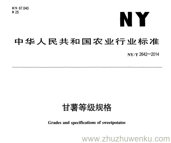 NY/T 2642-2014 pdf下载 甘薯等级规格 。Grades and specifications of sweetpotatos .