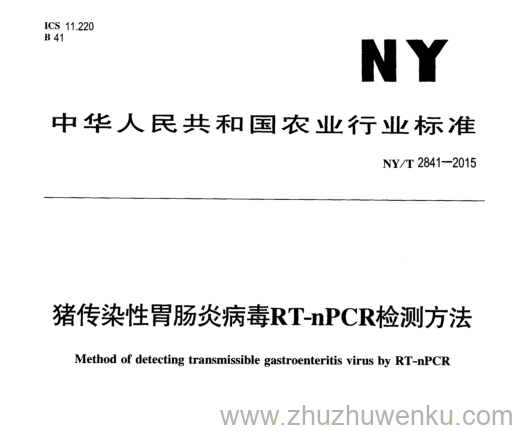 NY/T 2841-2015 pdf下载 猪传染性胃肠炎病毒RT-nPCR检测方法。Method of detecting transmissible gastroenteritis virus by RT-nPCR .