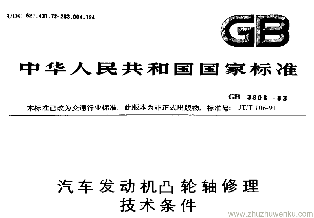 GB/T 3803-1983 pdf下载 汽车发动机凸轮轴修理 技术条件