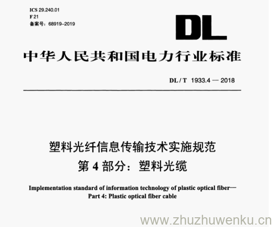 DL/T 1933.4-2018 pdf下载 塑料光纤信息传输技术实施规范 第4部分:塑料光缆。Implementation standard ofinformation technology of plastic optical fiber Part 4: Plastic optical fiber cable.