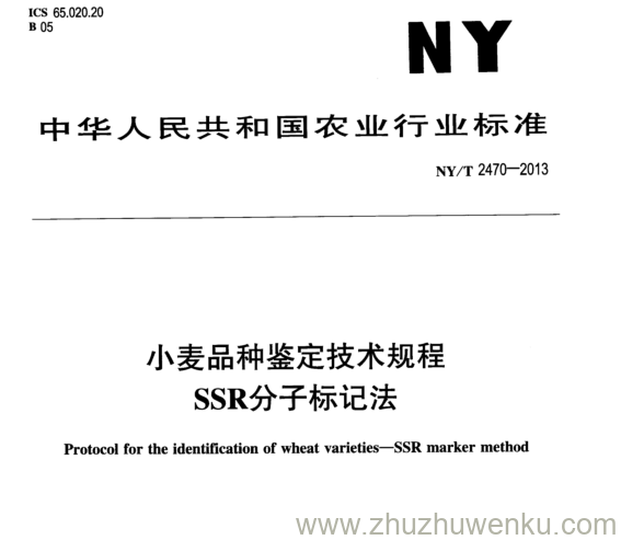 NY/T 2470-2013 pdf下载 小麦品种鉴定技术规程 SSR分子标记法。 Protocol for the identification of wheat varieties- SSR marker method .