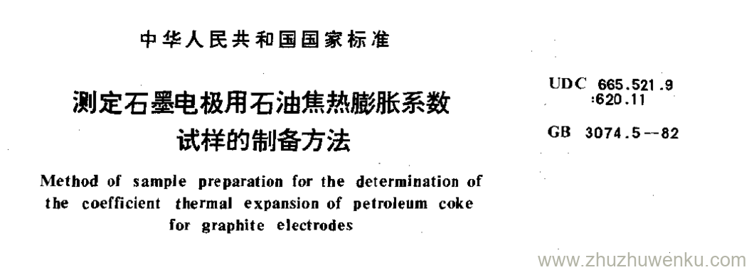 GB/T 3074.5-1982 pdf下载 测定石墨电极用石油焦热膨胀系数 试样的制备方法