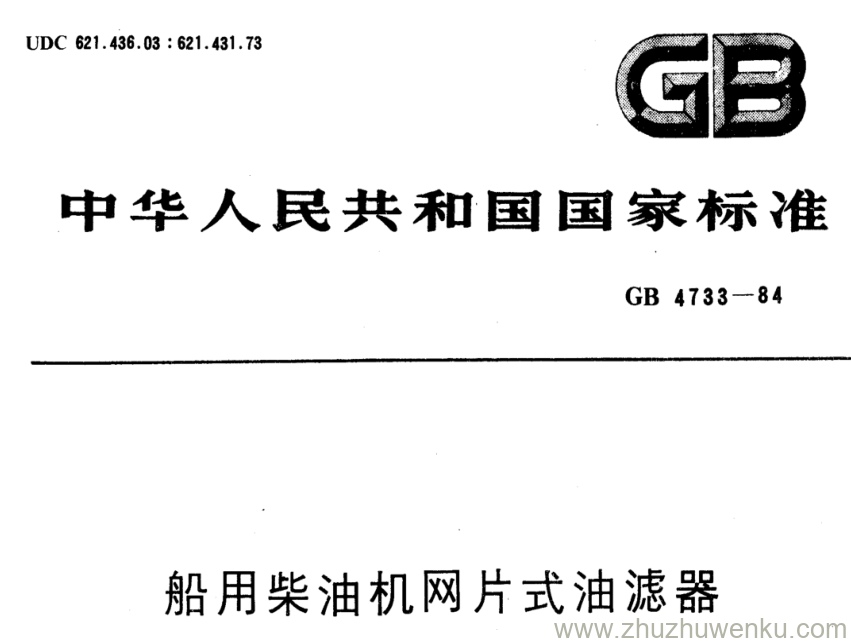 GB/T 4733-1984 pdf下载 船用柴油机网片式油滤器