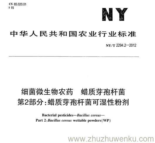 NY/T 2294.2-2012 pdf下载 细菌微生物农药蜡质 芽孢杆菌 第2部分:蜡质芽孢杆菌可湿性粉剂