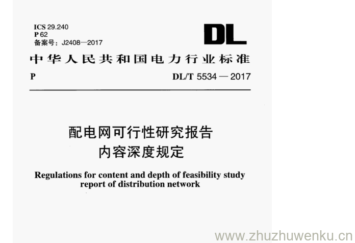 DL/T 5534-2017 pdf下载 配电网可行性研究报告 内容深度规定。Regulations for content and depth of feasibility study report of distribution network.