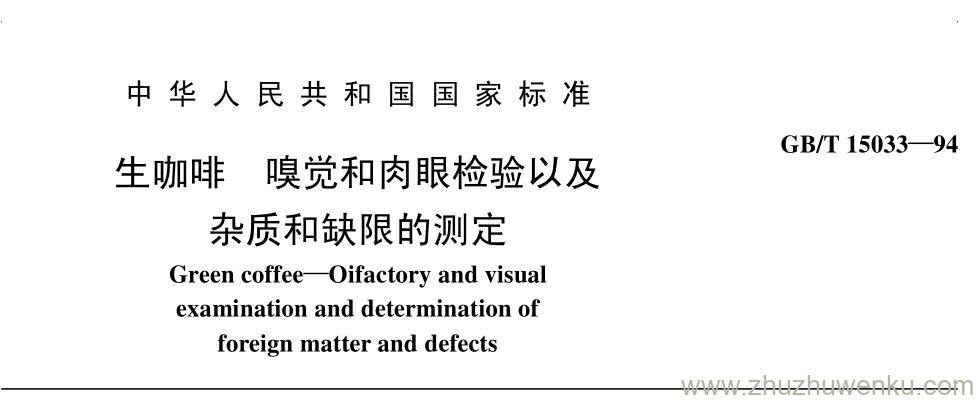 GB/T 15033-1994 pdf下载 生咖啡 嗅觉和肉眼检验以及 杂质和缺限的测定