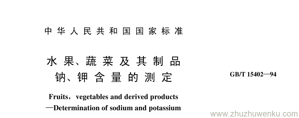 GB/T 15402-1994 pdf下载 水 果、 蔬 菜 及 其 制 品 钠、 钾 含 量 的 测 定