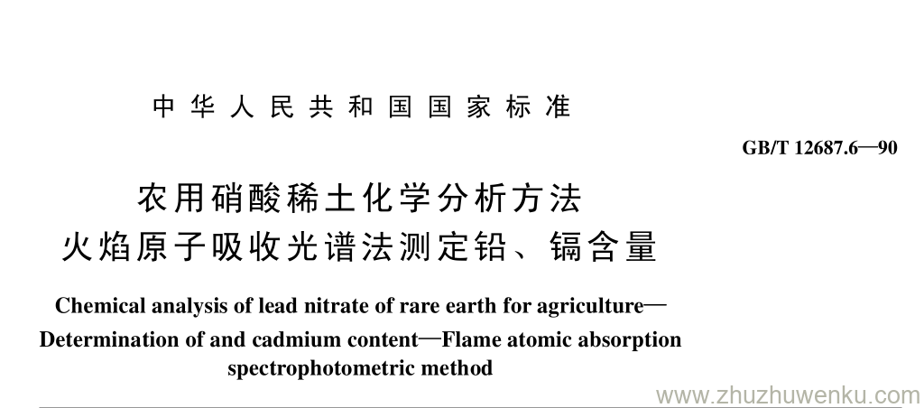 GB/T 12687.6-1990 pdf下载 农用硝酸稀土化学分析方法 火焰原子吸收光谱法测定铅、 镉含量