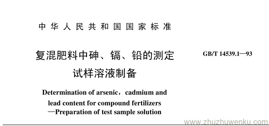 GB/T 14539.1-1993 pdf下载 复混肥料中砷、 镉、 铅的测定 试样溶液制备
