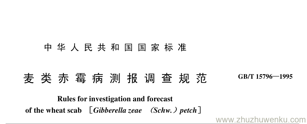 GB/T 15796-1995 pdf下载 麦 类 赤 霉 病 测 报 调 查 规 范