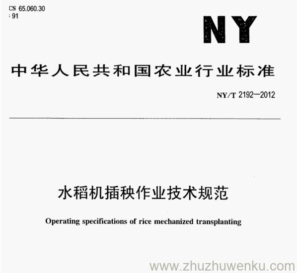 NY/T 2192-2012 pdf下载 水稻机插秧作业技术规范。 Operating specifications of rice mechanized transplanting .