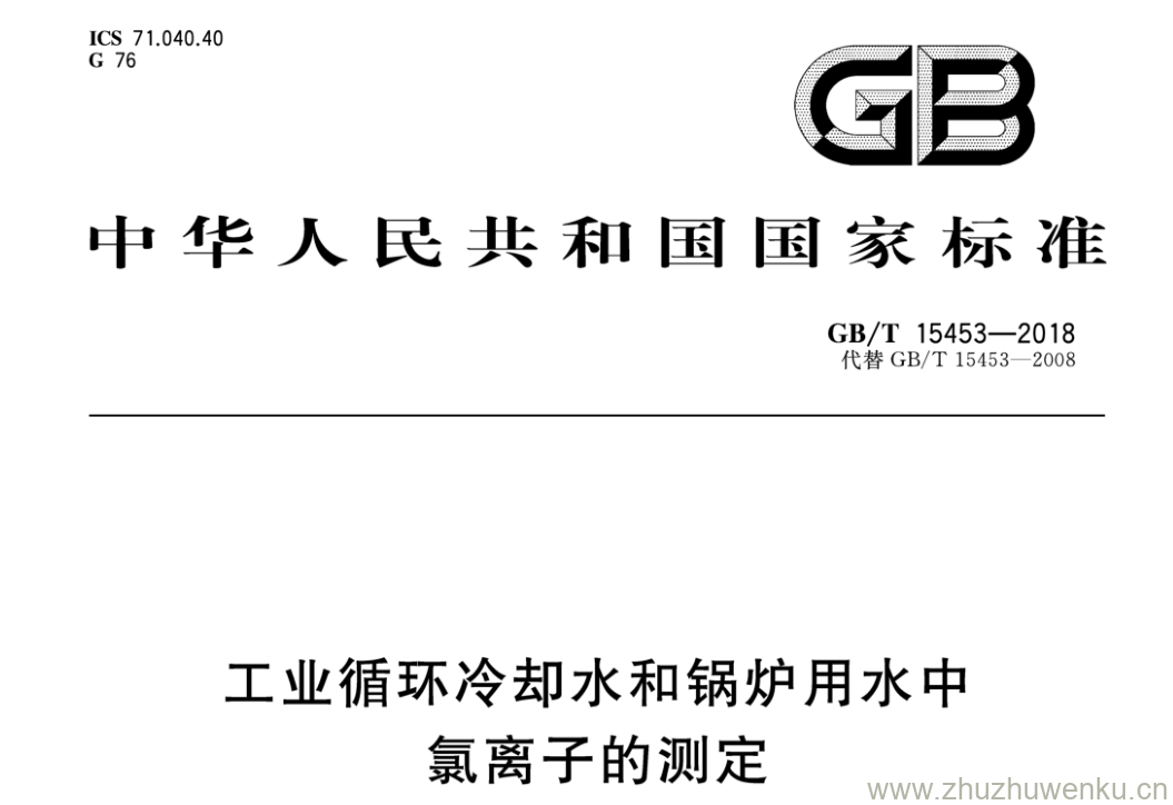 GB/T 15453-2018 pdf下载 工业循环冷却水和锅炉用水中氯离子的测定