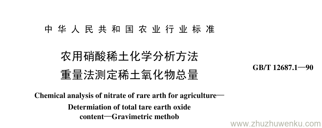 GB/T 12687.1-1990 pdf下载 农用硝酸稀土化学分析方法 重量法测定稀土氧化物总量