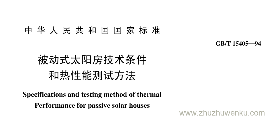 GB/T 15405-1994 pdf下载 被动式太阳房技术条件 和热性能测试方法