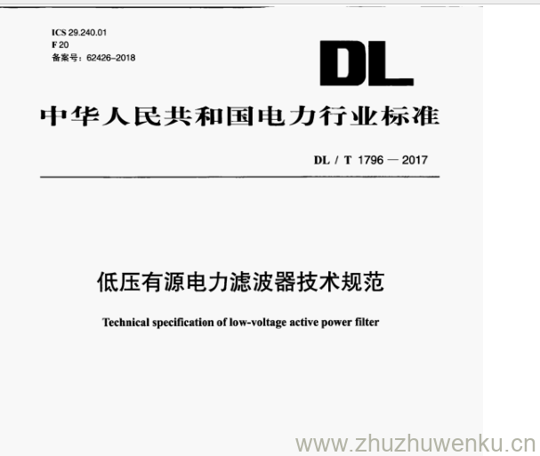 DL/T 1796-2017 pdf下载 低压有源电力滤波器技术规范。Technical specification of low-voltage active power filter.