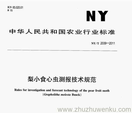 NY/T 2039-2011 pdf下载 梨小食心虫测报技术规范。 Rules for investigation and forecast technology of the pear fruit moth (Grapholitha molesta Busck) .
