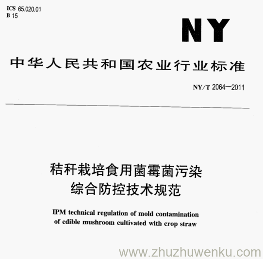 NY/T 2064-2011 pdf下载 秸秆栽培食用菌霉菌污染 综合防控技术规范。 IPM technical regulation of mold contamination of edible mushroom cultivated with crop straw .