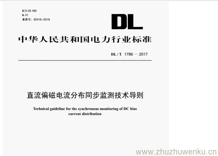 DL/T 1786-2017 pdf下载 直流偏磁电流分布同步监测技术导则。Technical guideline for the synchronous monitoring of DC bias current distribution.