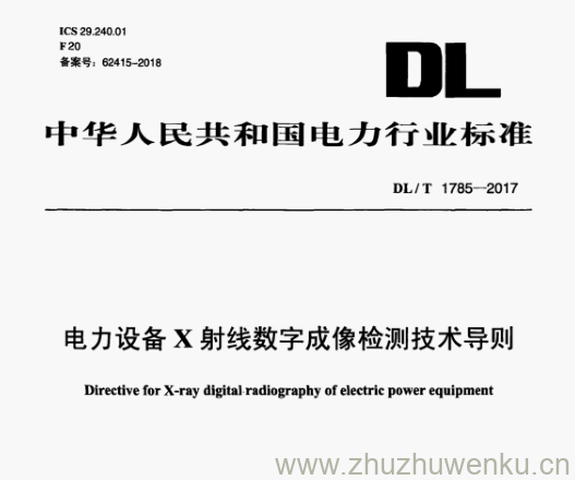 DL/T 1785-2017 pdf下载 电力设备X射线数字成像检测技术导则。Directive for X-ray digital radiography of electrie power equipment.